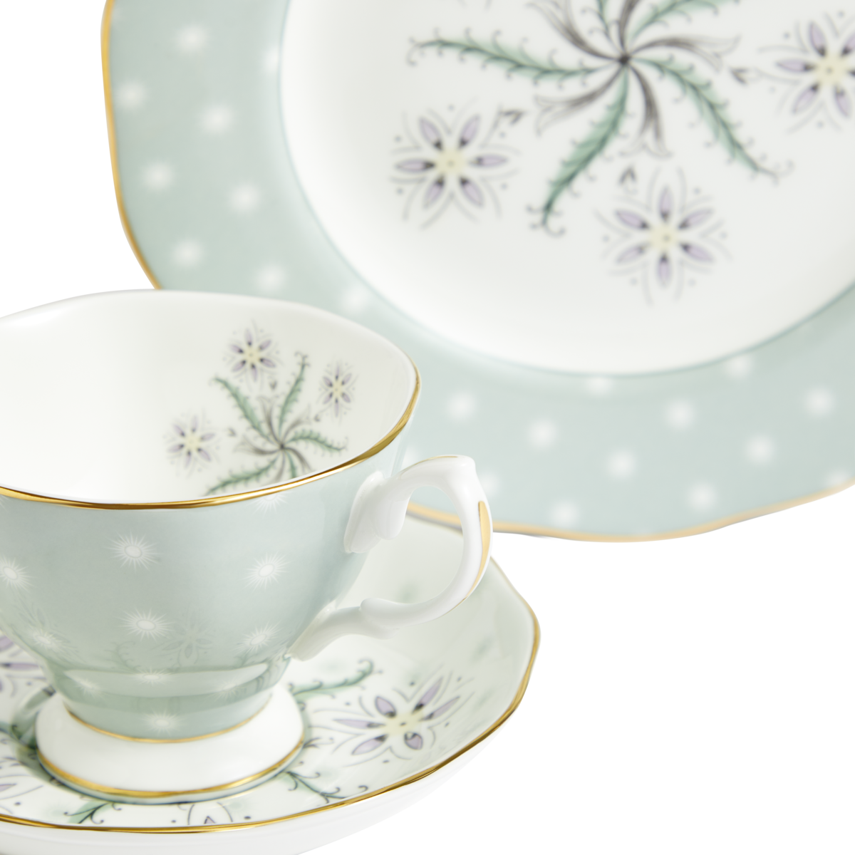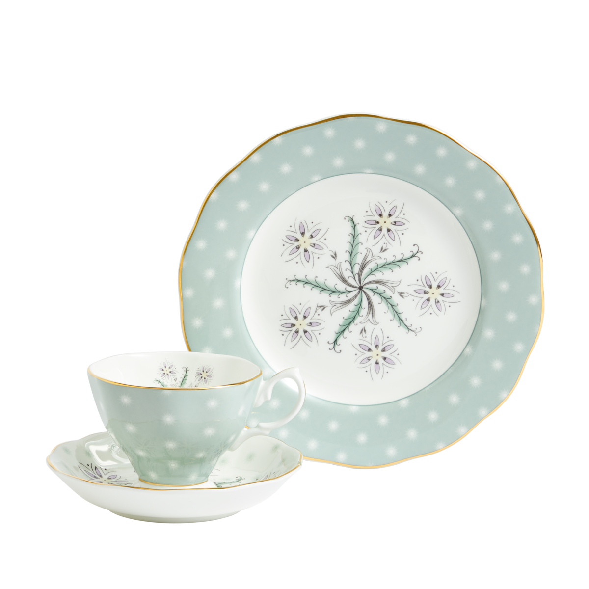 Enjoy the festivities with this fine bone china 3-Piece Set by Royal Albert. Mimicking the celebratory, yet neat and sleek vibe of the 1950’s, this set is finished with a decadent gold lining and comes packaged in a commemorative 100 Years of Royal Albert gift box.