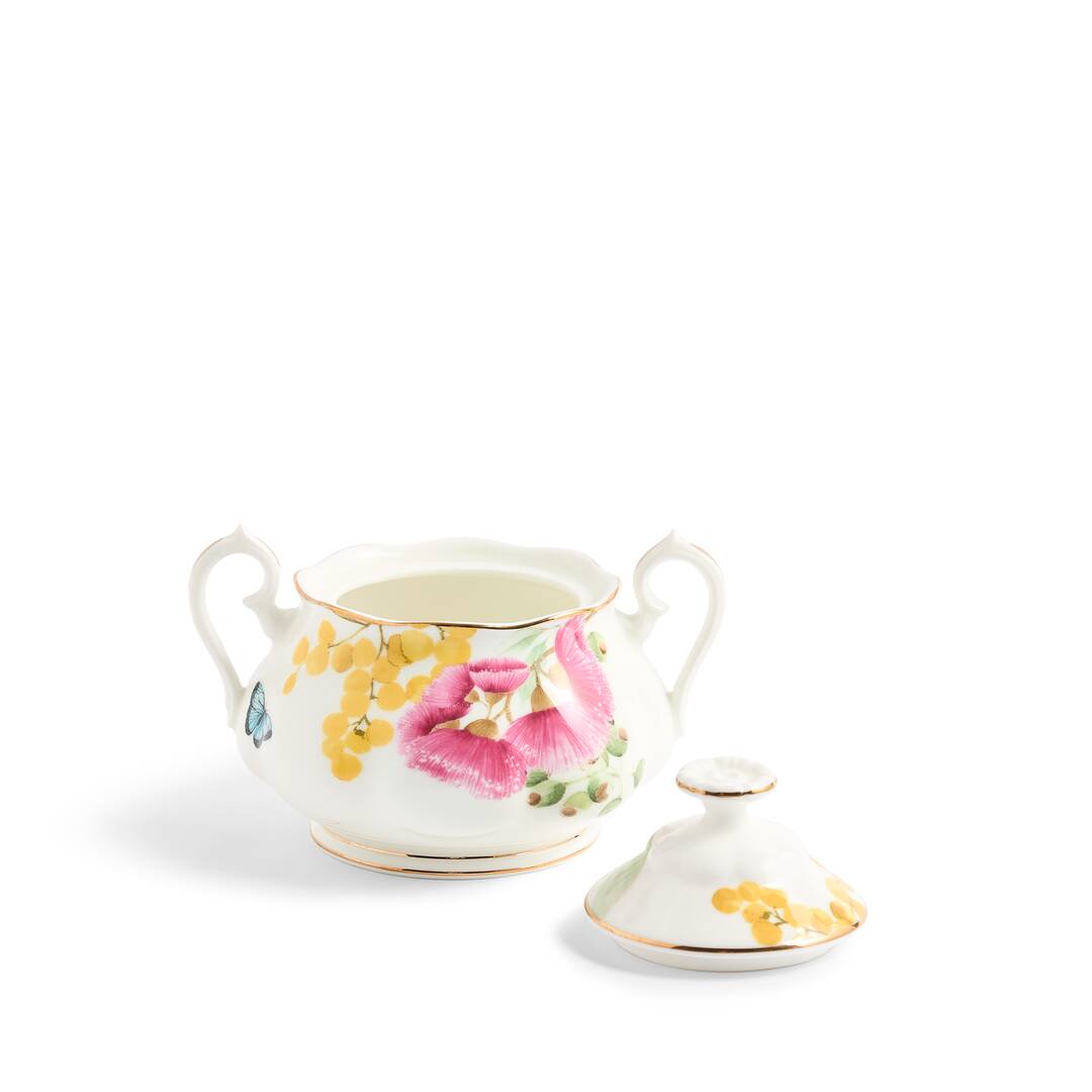 Featuring all you need for a special teatime moment like those Miranda Kerr shared with her beloved grandma, this set showcases the beautiful Australiana pattern. Each piece is formed from fine bone china and gracefully decorated with gold banding and vibrant natural accents featuring motifs from Miranda's native land, including eucalyptus, gum nuts and cockatoos.