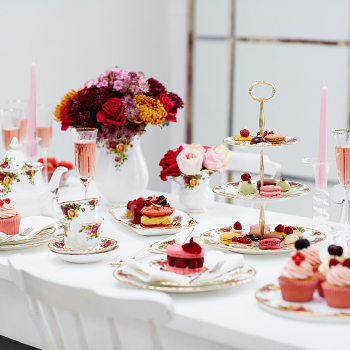 This Small Rim Soup Bowl is decorated with the Old Country Roses signature motif of burgundy, pink and yellow roses, accented with lustrous gold banding.