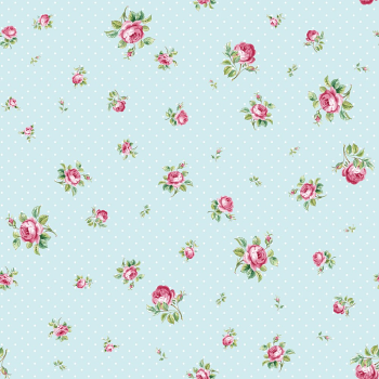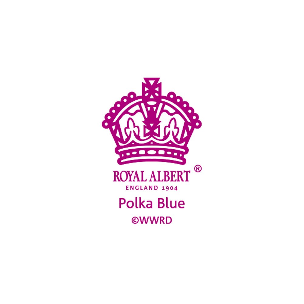 Sprinkled with small, delicate roses and and white polka dots on soft blue, the Polka Blue Teacup, Saucer, Plate is reminiscent of the 1930s art deco style.